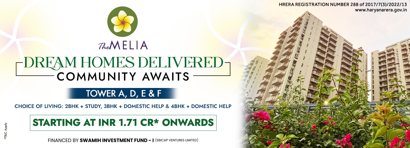 Spread over 17 acres, The Melia gives you a homely experience and thoughtfully designed to create the ideal living for all the families. Strategically located at sector 35 Sonha, just a short drive from the Golf Course Extension Road, these modern homes have been designed to create a safe and rewarding habitat that will stand the test of time.